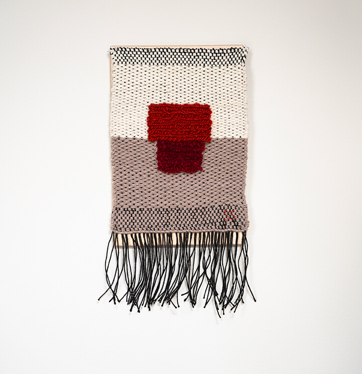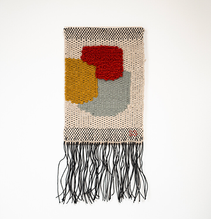 Composition 시리즈는 명확한 의미가 없는 색과 형태의 조합에서 비롯된 작업이다. 작가는 직관적으로 선택한 색과 구조를 통해 순간의 감각과 취향을 포착하고자 했 다. 이처럼 단편적인 조형 언어들을 직조라는 물리적 매체로 옮기는 과정은, 작가에게 반복과 집중의 리듬 속에서 내면의 질서를 찾아가는 경험이자 명상의 시간이 되기 도 한다.